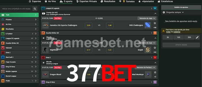 A aposta 377bet oferece aos jogadores a experiência mais conveniente de apostas em eSports!